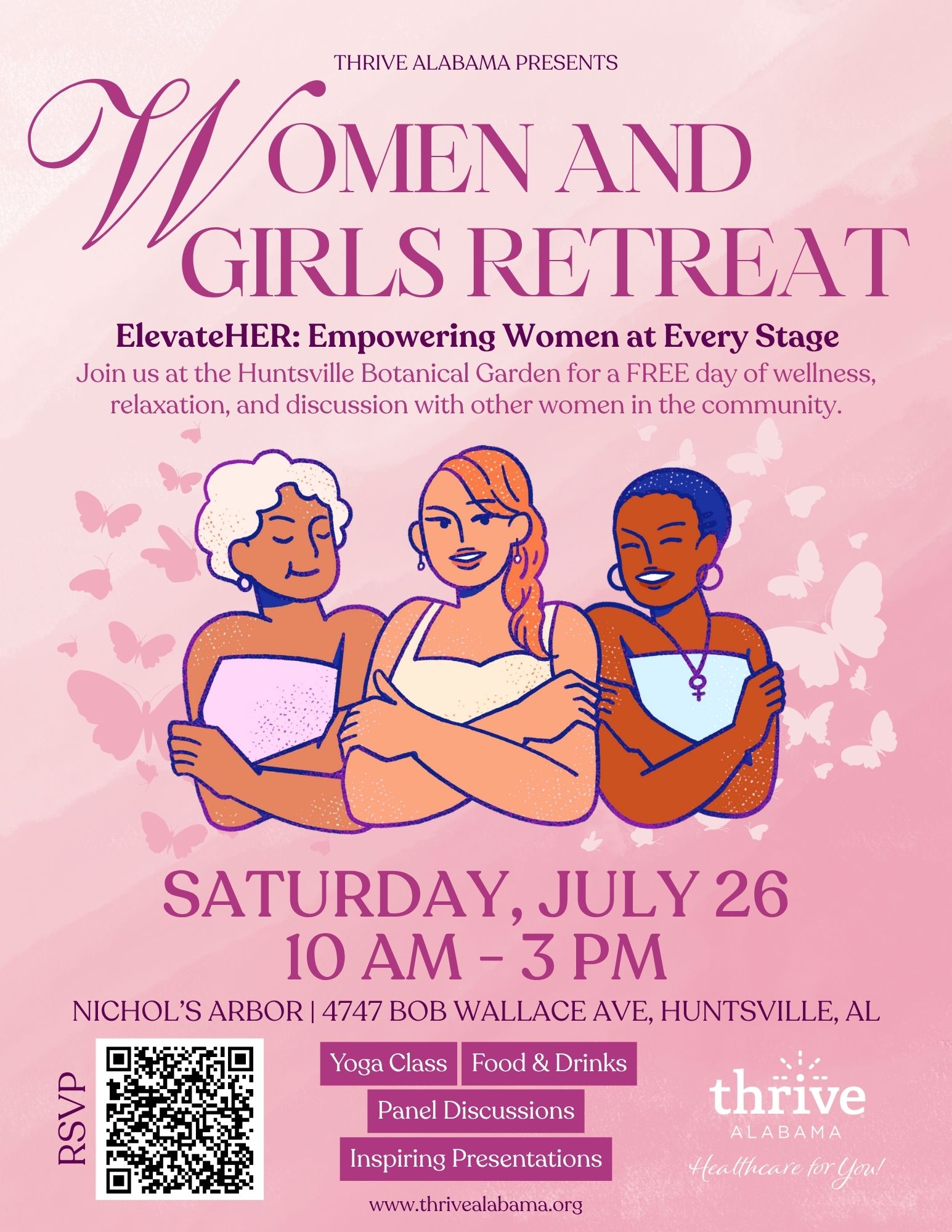 Join us at the Huntsville Botanical Garden for a FREE day of wellness, relaxation, & discussion with other women in the community.